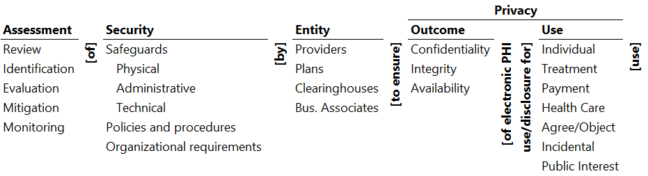 - Organizational requirements: Requirements of itself and its business associates to assure security and privacy.