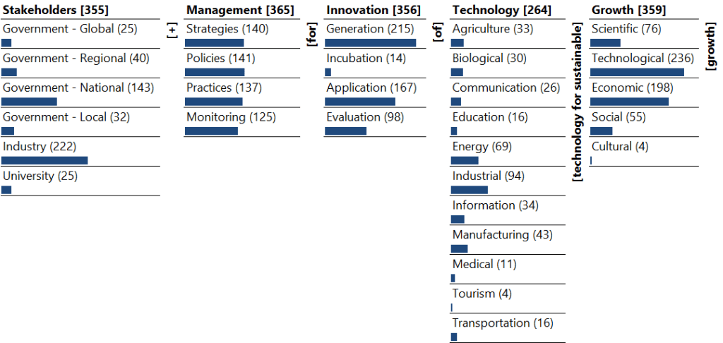- Practices: Actions for management of technology innovation for sustainable growth based on policies and strategies.