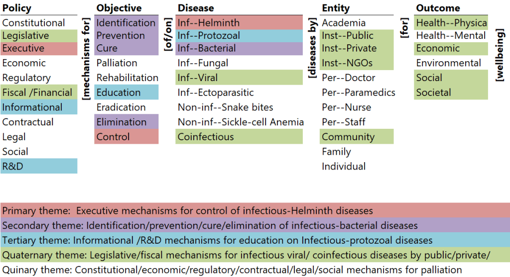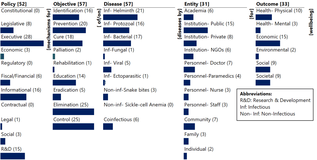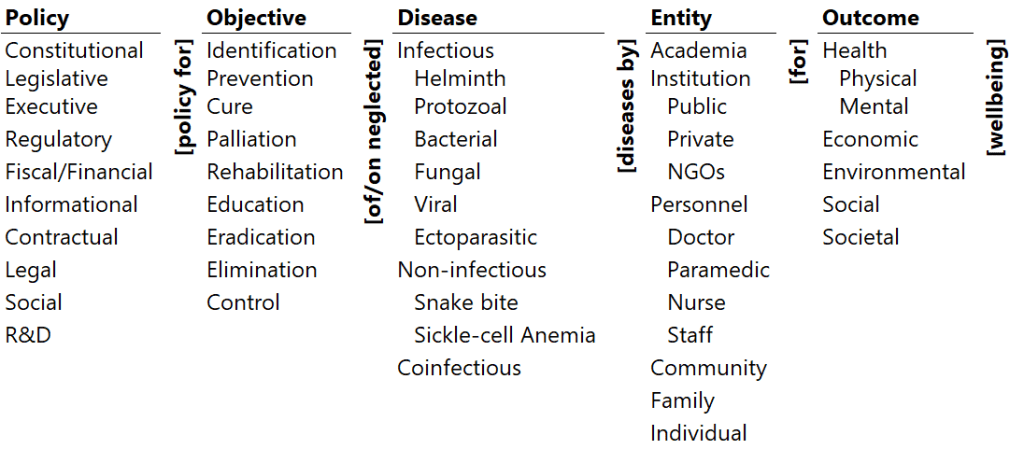 The paper explicates the state-of-the-policies and state-of-the-research on policies to eliminate neglected tropics diseases (NTDs) in India. It highlights the significant gaps in the diseases covered, balance in the objectives, comprehensiveness of policies, portfolio of outcomes, and involvement of entities. Last, it presents a set of systemic policies congruent with the ontology to systematically address the gaps.