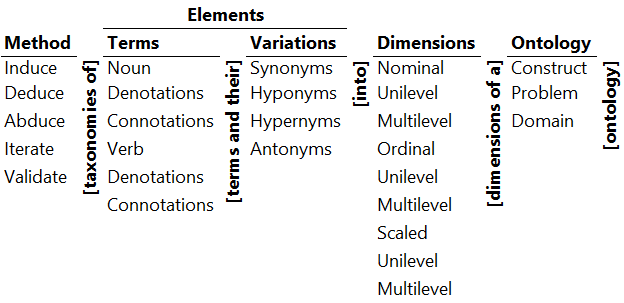 - Induce, deduce, abduce, iterate, and validate the taxonomies of key words/phrases